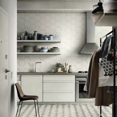 具有蠟質外觀的釉質磚。同色系變化和受損邊緣